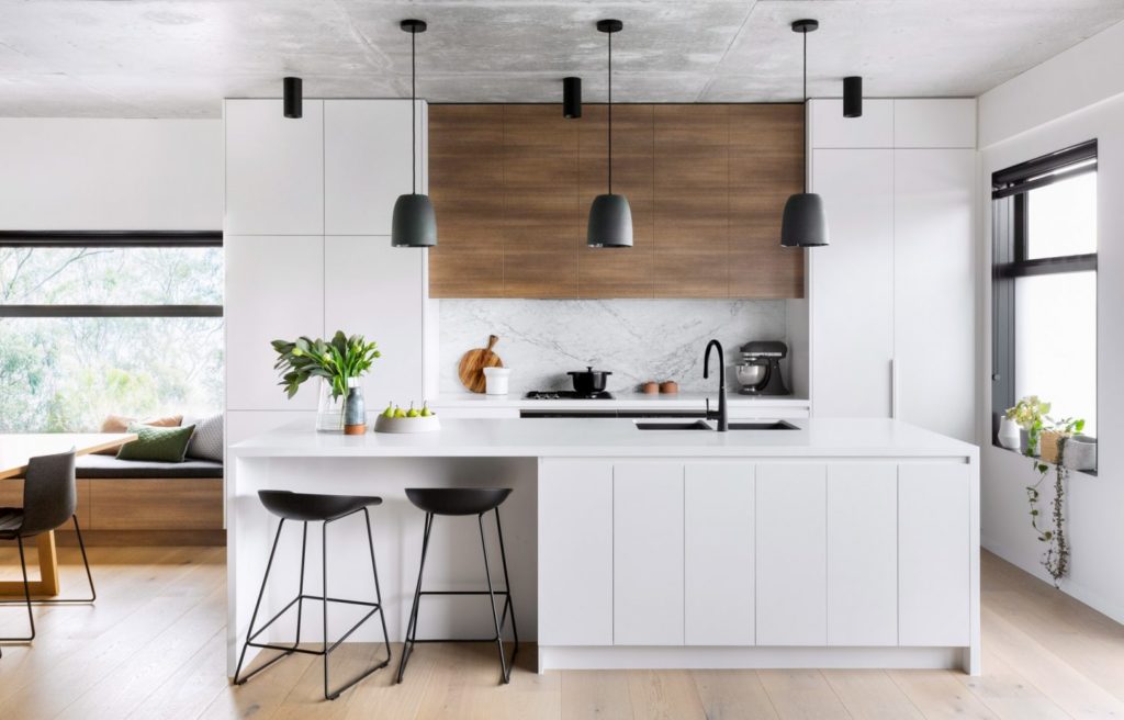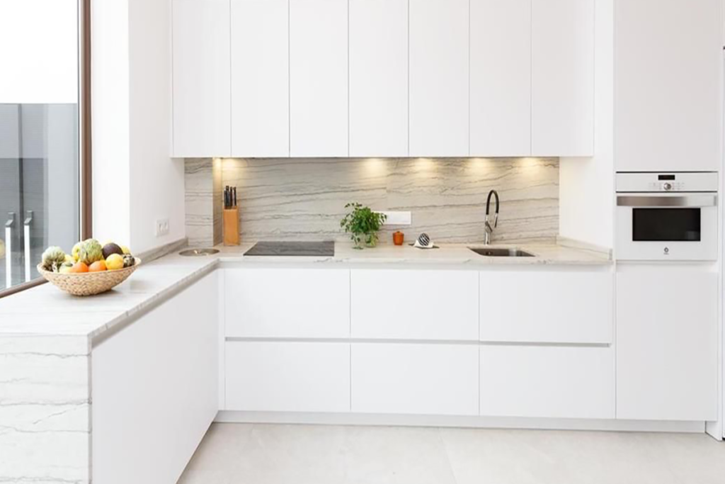 - ● Gran variedad en muebles de cocina, acabados en madera, fórmica lacada, PVC y cristal.